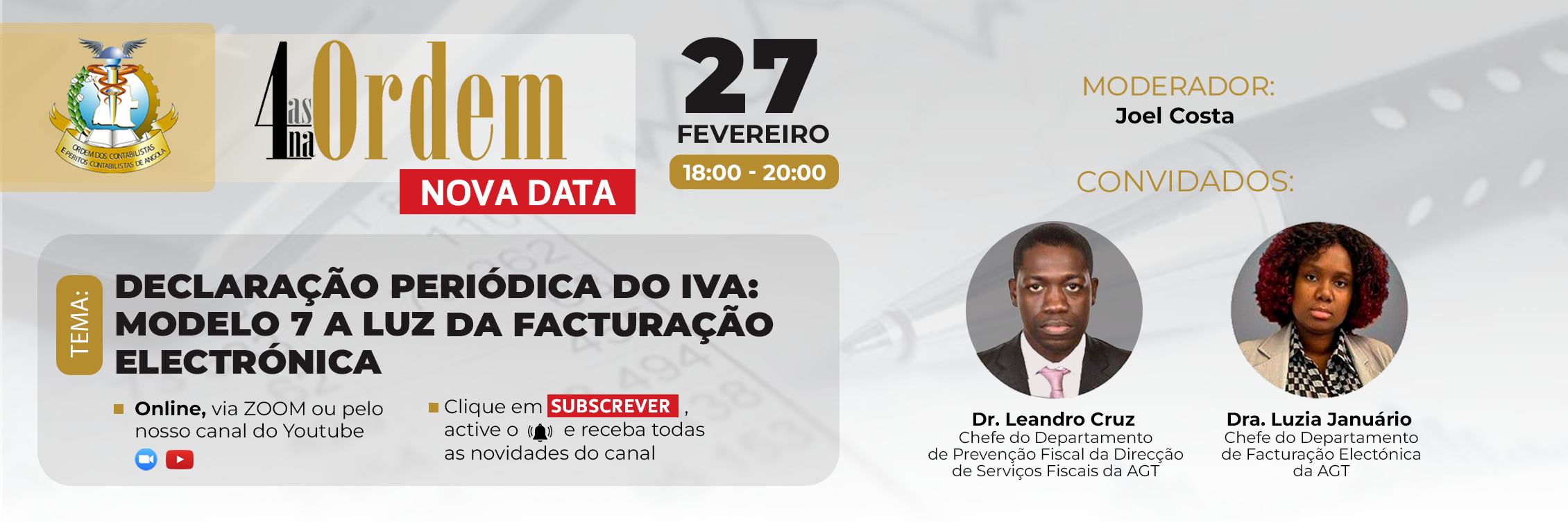6 - Núcleo do Huambo - Rua Mariano Machado, frente ao BCI - Contactos telefónicos: +244 972 096 628 | (+244) 972 096 641 - Horário de atendimento: Das 8h:00 às 15h:30 (Segunda a Sexta)